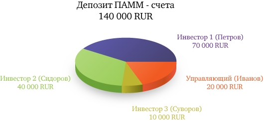 первоначального депозита ПАММ-счета (140 000 RUR) и общий баланс ПАММ-счета