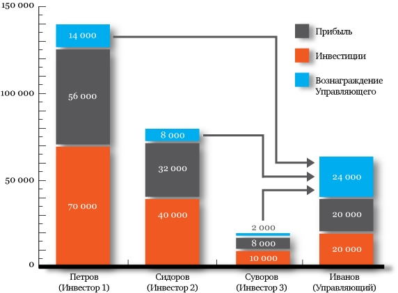 внесли на ПАММ-счет Иванова 50 000 RUR и 30 000 RUR соответственно. Таким