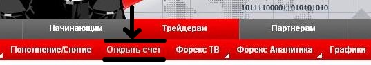 2) После перехода жмем на кнопку ТРЕЙДЕРАМ и на вкладку ОТКРЫТЬ СЧЕТ.