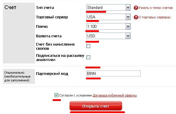 Внимание!!! В поле Партнерский код пишем "BINN" без кавычек, а то перекинут не туда!